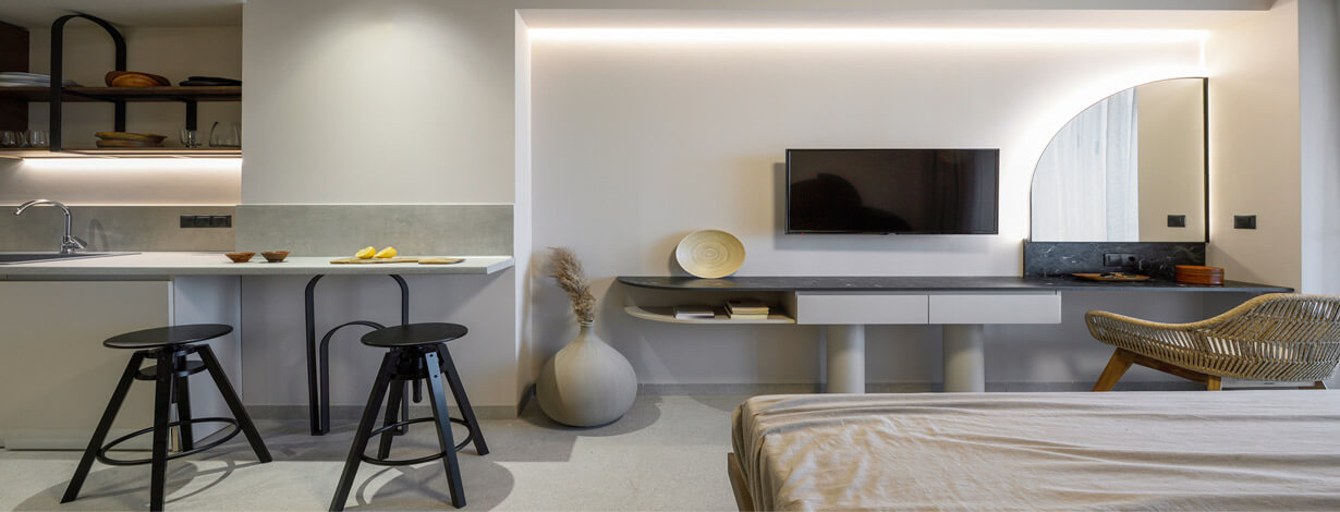 Αυτό είναι το μεγαλύτερο δωμάτιο του ξενοδοχείου, με θέα στη θάλασσα και πανοραμική θέα.